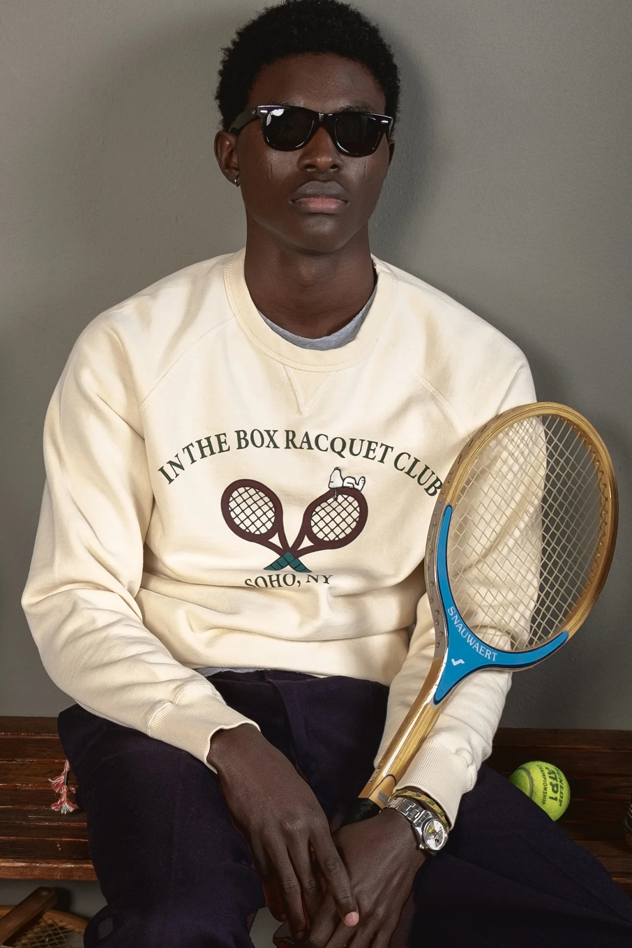 Unisex Snoopy Tennis Crewneck Sweatshirt in Cream
